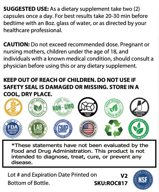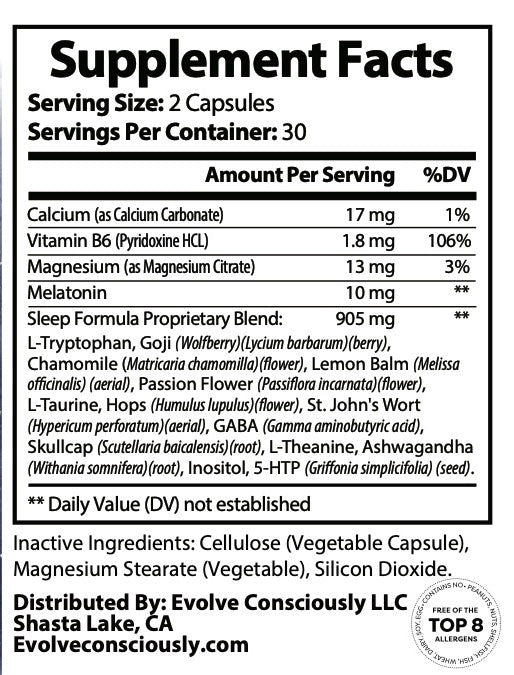- Sleep Formula Proprietary Blend (905 mg): Includes L-Tryptophan, Goji Berries, Chamomile, Lemon Balm, and more to promote relaxation.